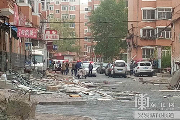爆炸中散落在地上的窗戶和玻璃碎片。