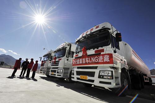 據(jù)青海油田液化天然氣公司副經(jīng)理趙舉介紹,拉薩城區(qū)所有天然氣站內(nèi)的LNG,均來自千里之外的青海油田格爾木液化天然氣生產(chǎn)工廠。每天約有100噸LNG通過大型槽車穿越“生命禁區(qū)”可可西里和海拔5000多米的唐古拉山運至拉薩。
