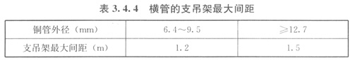 1制冷劑管道水平安裝應(yīng)使用支吊架進(jìn)行固定,橫管的支吊架最大間距應(yīng)符合表344的規(guī)定;