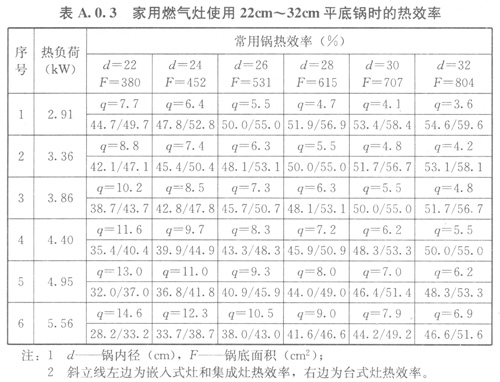 A.0.3家用燃?xì)庠钍褂?/span>22cm~32cm平底鍋時的熱效率可采用表A.0.3的數(shù)值。
