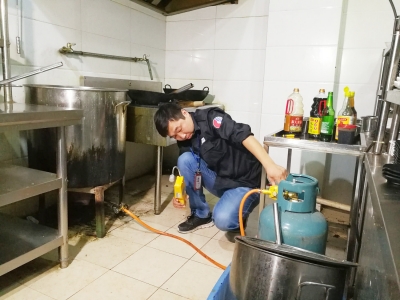 工作人員檢查液化氣管道是否漏氣 |