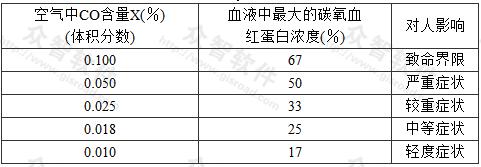 表5空氣中不同的CO含量與血液中最大的碳氧血紅蛋白濃度的關系