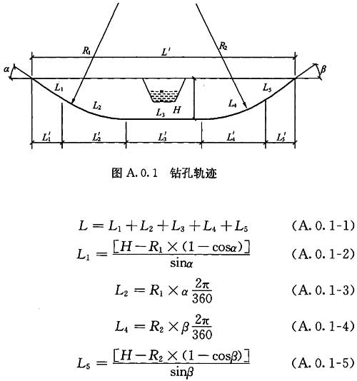 A.0.1 水平定向鉆軌跡長(zhǎng)度(圖A.0.1)可按下列公式計(jì)算: