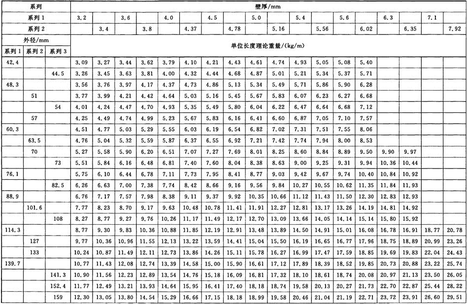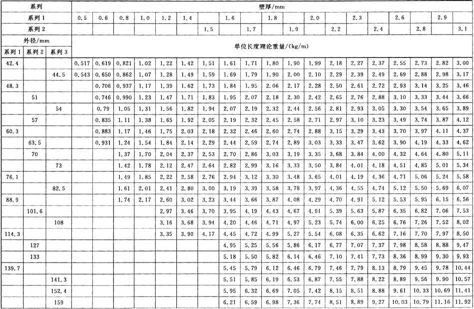 焊接鋼管尺寸及單位長(zhǎng)度重量國(guó)標(biāo)/T 21835-2008表格查看
