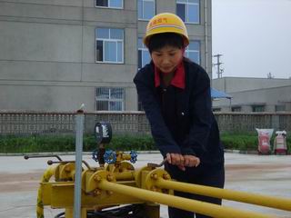 (圖十一)當確認槽車內(nèi)的天然氣已卸完時,先關閉槽車上的閥門,再關閉卸氣柱的進口閥門。