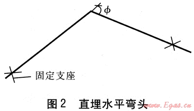 直埋水平彎頭見圖2,要求在滿足疲勞壽命和強度條件[3,4]的前提下進行優(yōu)化選型,使壁厚和曲率半徑達到最經(jīng)濟。