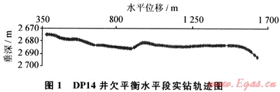 4) 在水平段欠平衡鉆井過程中采用EMWD,實(shí)現(xiàn)了水平段軌跡隨鉆測(cè)量和實(shí)時(shí)調(diào)整,圖1給出了DP14井欠平衡水平段實(shí)鉆軌跡。