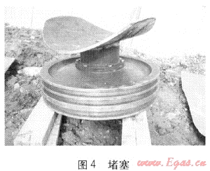⑥ 完成開孔時要在閥門及鞍形塊上進行標記,以便于下堵塞時能準確地放回,安排專人對鞍形塊進行修整,然后將其與堵塞及短節(jié)用電焊進行連接,焊接時必須保證鞍形塊的水平(堵塞見圖4)。