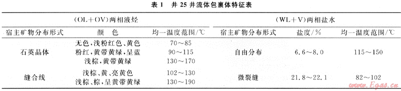 從古地溫梯度圖可以看出,井25井須家河組地層在演化過程中最高溫度為135℃,而包裹體均一溫度存在的第三個范圍,即130~155℃部分超出了須家河組的古地溫范圍。此現(xiàn)象應是由于外來深層高溫流體侵入造成的。這與前述的根據(jù)包裹體鹽度較低所推測的存在高演化油氣充注的結(jié)果一致。由此可見須家河組儲層接受了深層流體及烴源的貢獻,推測可能發(fā)生在喜山運動期,也即四川盆地普遍存在的天然氣重新分配與調(diào)整期。因此高溫流體對應這一成藏期。