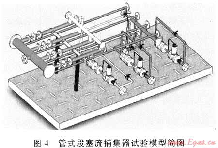 實驗環(huán)道的主要設備是管式液塞捕集器,根據(jù)實驗流量,設計為4管式,結構形式與目前生產(chǎn)用的一致。其三維模型如圖4所示。