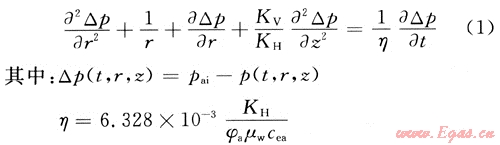 使用拉普拉斯變換和變量分離對式(1)求解,此外使用壓力平均法求取氣水界面處的壓力。