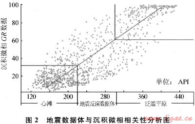 為保證震控的精確性,首先進行各種地震數(shù)據(jù)體與測井沉積微相相關性分析,優(yōu)選能夠較好區(qū)分沉積微相的地震數(shù)據(jù)體。通過井-震數(shù)據(jù)分析發(fā)現(xiàn):地震伽馬反演數(shù)據(jù)體與沉積微相具有很好的相關性[4](圖2),該數(shù)據(jù)體可用來做井間震控約束。
