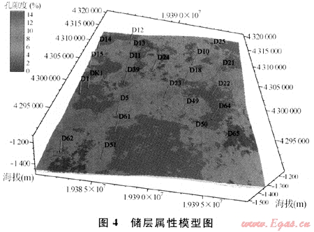 綜合利用地質、地震和測井資料,建立精細的沉積微相模型,揭示了砂體的空間幾何展布形態(tài)。在相控基礎上進行孔隙度、滲透率的研究,建立儲層屬性模型,則進一步揭示了儲層非均質性,指明了有利儲層發(fā)育區(qū),為進一步的油氣田開發(fā)指明了方向。實踐證明,借助于沉積微相和屬性建模方法,使該區(qū)的新鉆井符合率有顯著提高。