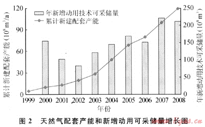 10年來,新建成沙坪場等15個新氣田,新增配套產(chǎn)能74×108m3/a;優(yōu)化調(diào)整老區(qū)補充產(chǎn)能建設(shè),有效彌補了老氣田產(chǎn)能,新增配套產(chǎn)能45.5×108m3/a。新老區(qū)共計新增配套產(chǎn)能119.5×108m3/a,新增動用可采儲量1355×108m3(如圖2)。