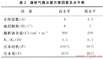 1) 借助實驗設(shè)計方法綜合考慮底水規(guī)模、儲層傾角、垂向滲透率、凝析油含量等地質(zhì)、油藏因素和注水時機、注水量等工程因素,對凝析氣藏注水開發(fā)進行了科學、高效的分析設(shè)計,確定了可以滿足設(shè)計需要的少量的、典型的、代表性的水驅(qū)方案。大大提高了開發(fā)方案設(shè)計的效率,減少了設(shè)計工作的工作量。