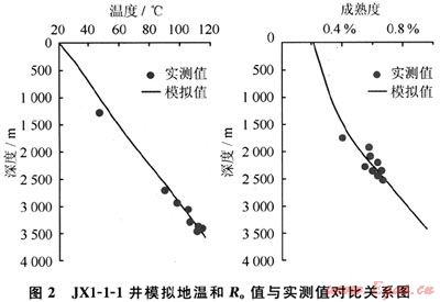 目前對有機質(zhì)生烴史模擬,已建立了化學動力學模型和實驗產(chǎn)烴率模型,以及成熟度的各種計算模型(TTI、EASY%Ro等)。本次研究應用EASY%R。模型[8~11]。該方法模擬生烴史基于烴源巖埋藏史與熱史,在此基礎(chǔ)上模擬鏡質(zhì)體反射率隨時間的變化;然后通過Ro值的演變確定有機質(zhì)成熟的時間與深度或溫度,進而劃分烴源巖生烴門限和演化階段。