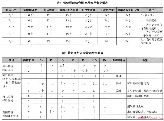 管儲調(diào)峰調(diào)度過程可參照表1和表2。