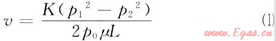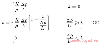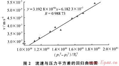 可以看出,v與p12-p22為通過原點(diǎn)的線性關(guān)系。當(dāng)存在啟動(dòng)壓力梯度時(shí)應(yīng)該為: