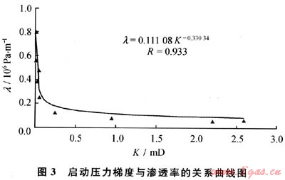 2.2.2滲透率與啟動(dòng)壓力梯度的關(guān)系