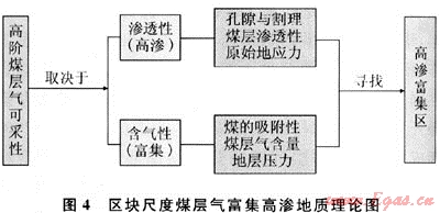 建立了沁水氣田煤層氣成藏模式,認(rèn)為本區(qū)煤層氣藏為受巖漿熱成因形成的承壓水封堵煤層氣藏,其富集程度主要受儲層條件和保存條件的影響;形成了區(qū)塊尺度煤層氣富集高滲地質(zhì)控制理論(圖4),認(rèn)為沁南煤層原生孔隙割理系統(tǒng)決定了煤層滲透性的大小,構(gòu)造背景和斷層發(fā)育程度明顯控制煤層含氣性;形成了5項配套工藝技術(shù),包括山地淺層二維地震采集和精細解釋、富集高滲區(qū)地質(zhì)預(yù)測與井位部署、羽狀水平井及配套工藝、適用性舉升工藝和智能排采控制。