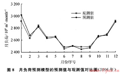 根據(jù)2.2所介紹的方法,以2006年為例,得到燃氣月負荷預(yù)測模型的預(yù)測結(jié)果,如圖8所示。