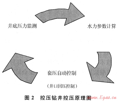 哈里伯頓控壓鉆水平井控壓原理:使用低密度鉆井液,通過對井底壓力的實(shí)時(shí)監(jiān)測、水力參數(shù)的分析計(jì)算、井口套壓(或回壓)的自動(dòng)控制,實(shí)現(xiàn)合理的井底壓力,始終保持井底壓差處于微過平衡狀態(tài),確保鉆井安全??貕恒@井控壓原理見圖2。