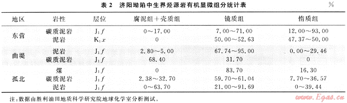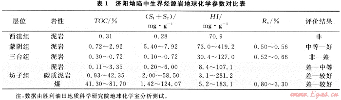 有機(jī)質(zhì)豐度是評價(jià)烴源巖非常重要的指標(biāo)之一,關(guān)系到烴源巖是否具有形成工業(yè)性油氣聚集的潛力。分析測試結(jié)果表明,濟(jì)陽坳陷的蒙陰組與坊子組有機(jī)質(zhì)豐度相對較高(表1)。
