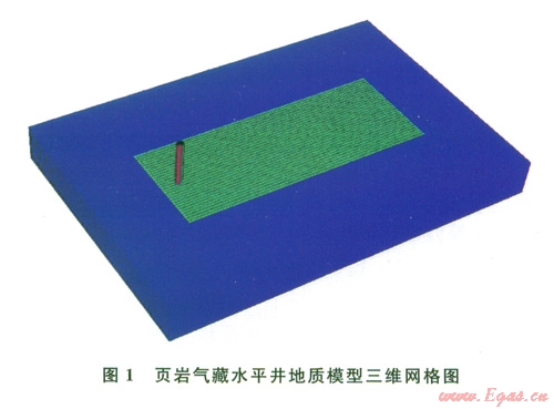 頁巖儲(chǔ)層基質(zhì)滲透率極低且發(fā)育不同程度的微裂縫,整體表現(xiàn)為雙孔特征。因此,通常應(yīng)用雙孔模型對(duì)頁巖儲(chǔ)層進(jìn)行數(shù)值模擬研究。通過借鑒國外頁巖儲(chǔ)層典型參數(shù)建立了頁巖氣藏水平井雙孔地質(zhì)模型,頁巖儲(chǔ)層深度2 000 m,有效厚度30 m,孔隙度0.05,基質(zhì)滲透率0.001 mD,原始含氣飽和度為0.70,原始地層壓力20 MPa,Langmuir壓力3 MPa,Langmuir體積13 m3/m3,天然氣總地質(zhì)儲(chǔ)量5.4276×108 m3。頁巖氣藏水平井地質(zhì)模型長l 210 m,寬