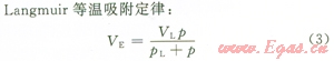 式(2)給出了Freundlich等溫吸附方程,在特定溫度下固體顆粒表面的氣體吸附量和壓力呈指數(shù)關(guān)系[10],當(dāng)壓力增至某個(gè)門限值后,氣體吸附量隨壓力的增長趨勢(shì)變緩。因此,Freundlich指數(shù)等溫吸附定律也僅在低壓條件下的小范圍內(nèi)才適用。