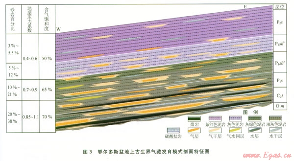 鄂爾多斯盆地蘇里格氣田及其以東地區(qū)的上古生界就具備這樣的地質(zhì)條件(圖3)。首先其在晚白堊世-新近紀(jì)隆升剝蝕了l 200~l