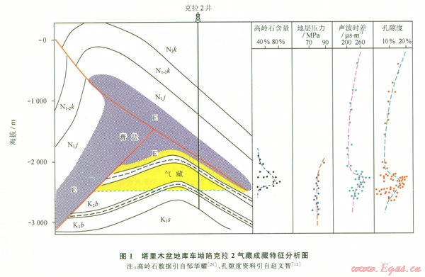 抽吸效應(yīng)的地質(zhì)表現(xiàn)主要包括:氣藏高壓-超高壓(局部氣層壓力與深層相近)、儲(chǔ)層孔隙度增大、天然氣干而丙烷含量稀少、碳同位素值變重、氣藏內(nèi)砂巖儲(chǔ)層高嶺石含量高等特征。如克拉2大氣田的天然氣儲(chǔ)量超過2 000×