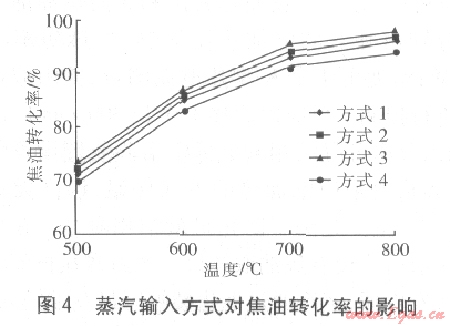 ③蒸汽輸入方式對焦油轉(zhuǎn)化率的影響