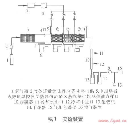 實(shí)驗裝置見圖l,包括材料存放區(qū)、生物質(zhì)熱解區(qū)、催化裂解區(qū)、蒸汽發(fā)生器、熱解氣冷卻裝置、檢測系統(tǒng)等。整個反應(yīng)器為長
