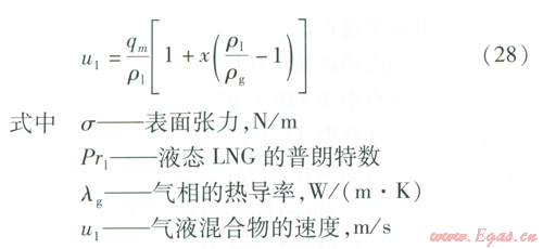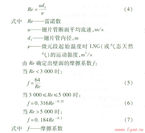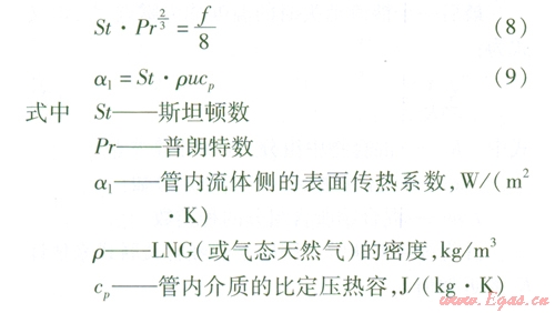 管內(nèi)LNG或氣態(tài)天然氣的對(duì)流換熱可以按照內(nèi)部強(qiáng)制對(duì)流換熱的實(shí)驗(yàn)準(zhǔn)則關(guān)聯(lián)式進(jìn)行計(jì)算。