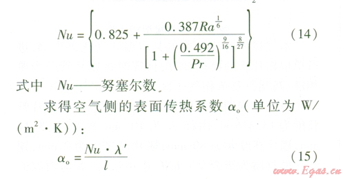 由于翅片管為立式安裝,故此處自然對(duì)流換熱計(jì)算選用豎壁準(zhǔn)則關(guān)聯(lián)式: