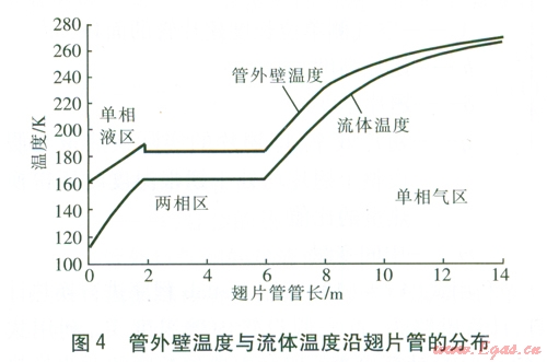 由上述可以看出,以往對(duì)AAVs的研究主要集中在空氣側(cè)特性的研究,而對(duì)LNG這一特定介質(zhì)的管內(nèi)氣化過(guò)程的換熱研究較少。本文對(duì)LNG空溫式氣化器單根翅片管的換熱進(jìn)行計(jì)算,并分析管內(nèi)的相變吸熱特點(diǎn)。