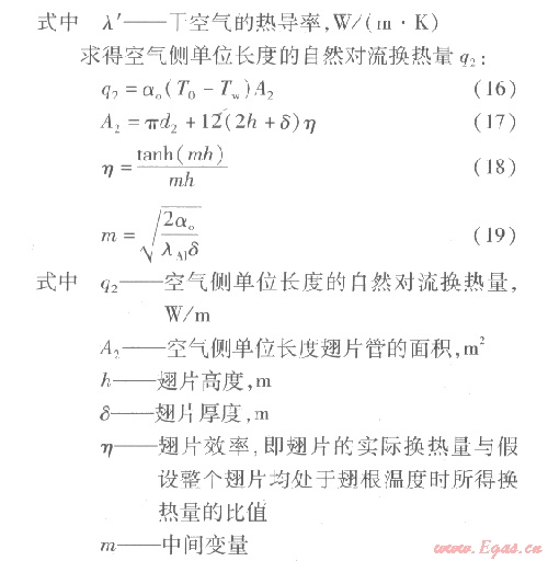 ⑥管外空氣側(cè)按大空間自然對(duì)流換熱處理。