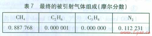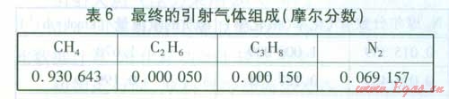 最終引射氣體組成及相關(guān)數(shù)據(jù) 最終引射氣體組成見表6。