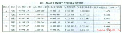 0.670 kmoL/h的氣相與原料氣組成混合氣體即為第三次引射的引射氣體,經(jīng)計(jì)算引射氣體組成及相關(guān)參數(shù)見表5狀態(tài)點(diǎn)A。