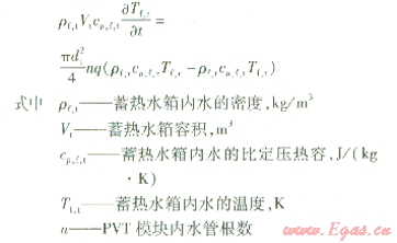 設(shè)定蓄熱水箱內(nèi)水溫分布一致,忽略散熱損失,蓄熱水箱內(nèi)水的熱平衡方程為: