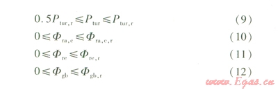 約束條件主要包括設(shè)備性能約束、設(shè)備負荷率約束、能流平衡約束條件。