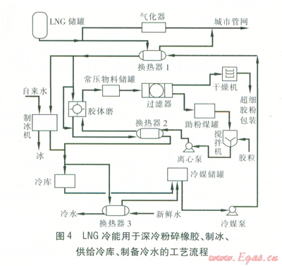 針對上述特點,遠期擬開展LNG衛(wèi)星站冷能用于深冷粉碎橡膠、制冰、中小型低溫冷庫、發(fā)電的研究以及LNG的梯級利用等。