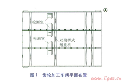 項(xiàng)目位于天津市北辰科技產(chǎn)業(yè)園區(qū)內(nèi),主要承擔(dān)各種規(guī)格減速機(jī)齒輪的生產(chǎn)。齒輪加工車間主要包括齒輪加工區(qū)及檢測室,平面布置見圖l