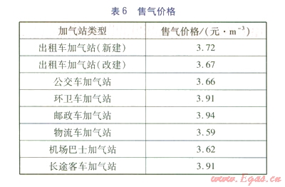 以項目資本金內(nèi)部收益率l2%為設(shè)定目標(biāo)收益率,推算各類加氣站的售氣價格與現(xiàn)行汽()油價格相比,有較大的競爭力。