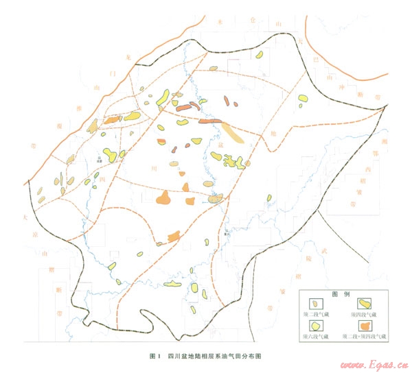 近60年在四川盆地對陸相層系的油氣勘探取得了大量成果,發(fā)現(xiàn)油氣田60余個(圖1),探明天然氣儲量約7 000×108m3,顯示出四川盆地陸相層系具有“多套砂巖油氣層與頁巖氣層交叉疊置、滿盆分布”的特點,砂巖油氣和頁巖氣兼顧立體勘探格局將向全盆地展開,前景十分廣闊。