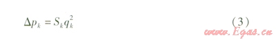 第k條支路阻力Δpk的計(jì)算式為: