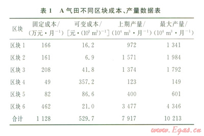 氣田調(diào)峰生產(chǎn)時,一定階段內(nèi)總需求量和價格是確定的,因此在氣田不同區(qū)塊內(nèi)配產(chǎn)時,成本是決定當(dāng)期效益的直接指標(biāo)。