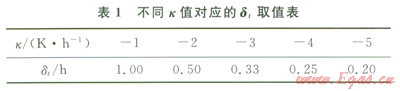 由于全容式混凝土頂儲(chǔ)罐要求其最大冷卻速度不能超過(guò)-5K/h,所以k的范圍為[-5,0]。dt的取值將直接影響到模型的精度,若dt取值過(guò)大,則模型的準(zhǔn)確性將會(huì)下降。通過(guò)綜合分析,確定以?xún)?chǔ)罐溫度每下降lK所用的時(shí)間作為dt的取值。表l列出了不同k值對(duì)應(yīng)的dt取值。