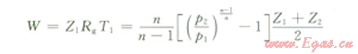 式中W為單位質(zhì)量天然氣的理論壓縮功,kJ/kg;Z1、Z2為進、排氣壓力下的氣體壓縮性系數(shù);Rg為氣體常數(shù),kJ/(kg·K);T1為壓縮缸進氣溫度,K;n為壓縮過程多變指數(shù);P1、P2為壓縮缸進、排氣壓力,MPa。