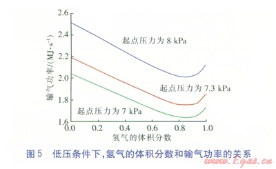 由圖4、5可知,增大管道的壓力降后,無論中壓還是低壓條件,管道的輸氣功率均有顯著提升。在中壓條件下,混合氣體中氫氣的體積分數(shù)為0.23時,為保證輸氣功率不變,則起點壓力需從0.38MPa增大到0.384MPa。在低壓條件下,混合氣體中氫氣的體積分數(shù)為0.23時,為保證輸氣功率不變,則起點壓力需從7kPa增大到7.3kPa。這說明微小提升壓力降,就能保證管道的輸氣能力不變。
